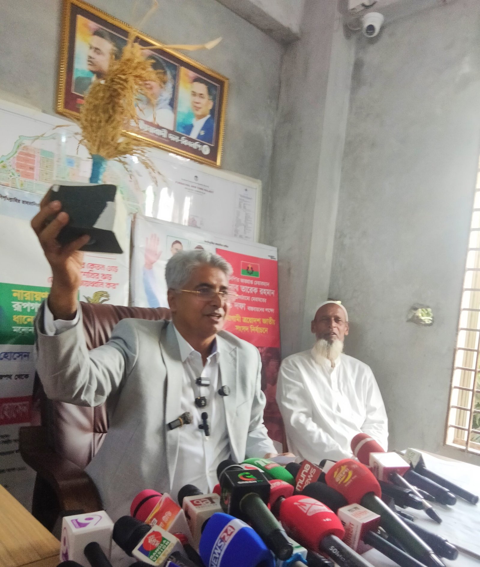 এসময় উপস্থিত বিএনপি নেতাদের হাতে ধানের শীষের প্রতীক তুলে দেন এবং বিএনপির মনোনীত প্রার্থী মুস্তাফিজুর রহমান ভুঁইয়া দিপুকে সমর্থন দেন।