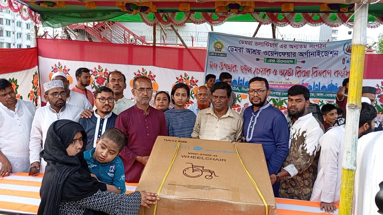 পবিত্র ঈদুল ফিতর উপলক্ষে রাজধানীর ডেমরায় ১ হাজার ৩’শ সুবিধা বঞ্চিত পরিবারের মাঝে ঈদ উপহার সামগ্রী বিতরণ করা হয়েছে। এসময় ৩ জন অসহায়কে ৩টি অটোরিক্সা, একজন ভ্যানচালককে ১টি ভ্যান ও ১ জন প্রতিবন্ধীকে হুইল চেয়ার প্রদান করা হয়েছে।