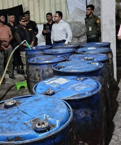 ভ্রাম্যমাণ আদালত সূত্র জানায়, ওই প্রতিষ্ঠানের গুদামে অভিযান চালানো হয়। সরকারি অনুমোদন ও বিএসটিআই লাইসেন্স ও অনুমোদন ছাড়াই ওই প্রতিষ্ঠান অবৈধভাবে অনুমোদনহীন ও ভুয়া ব্র্যান্ডের ভোজ্য তেল বোতলে